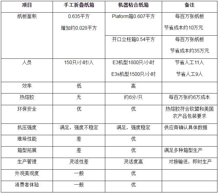 機(jī)器粘合的紙箱和手工折疊的紙箱比較