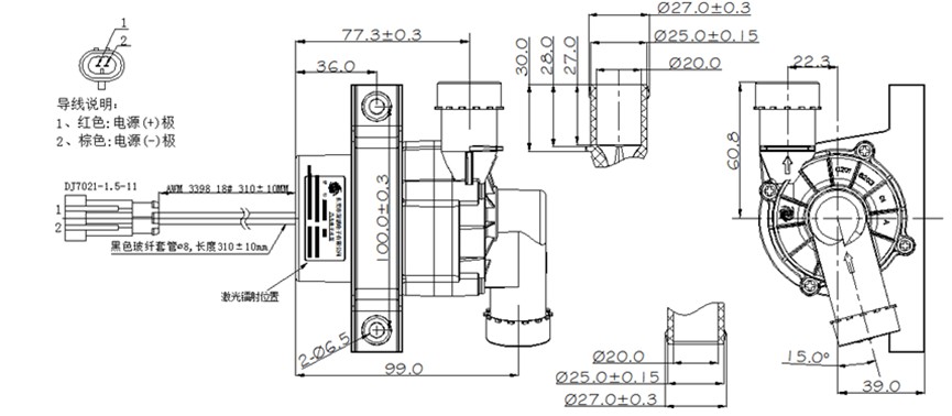 5.進(jìn)出水口直徑:25mm