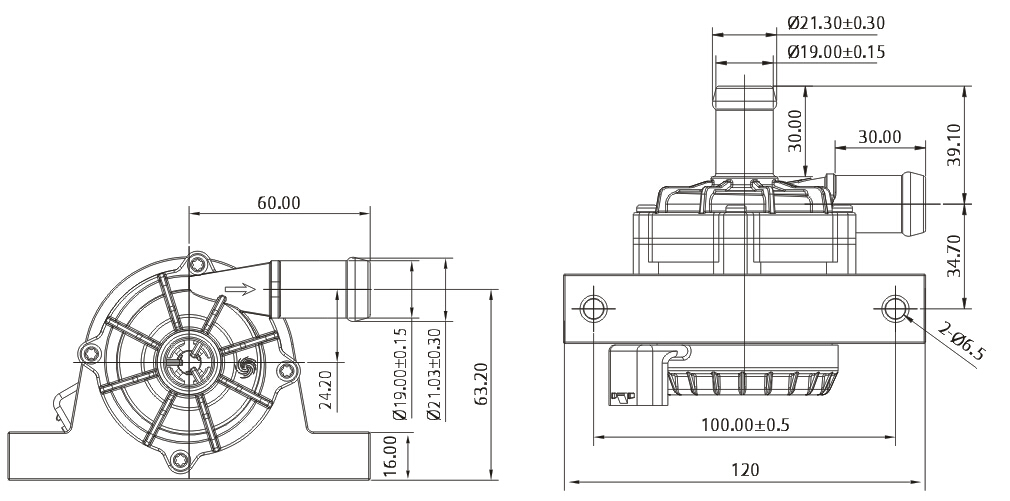 5.進(jìn)出水口直徑:19mm